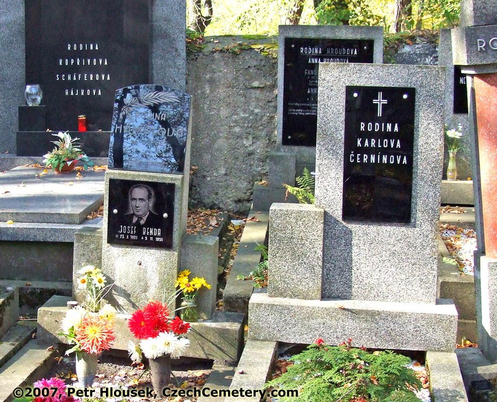 Left: Josef Benda, *23.3.1905 - †5.11.1956 | Right: | Neighbouring graves: František Hrouda, *22.8.1927 - †21.10.1940 |