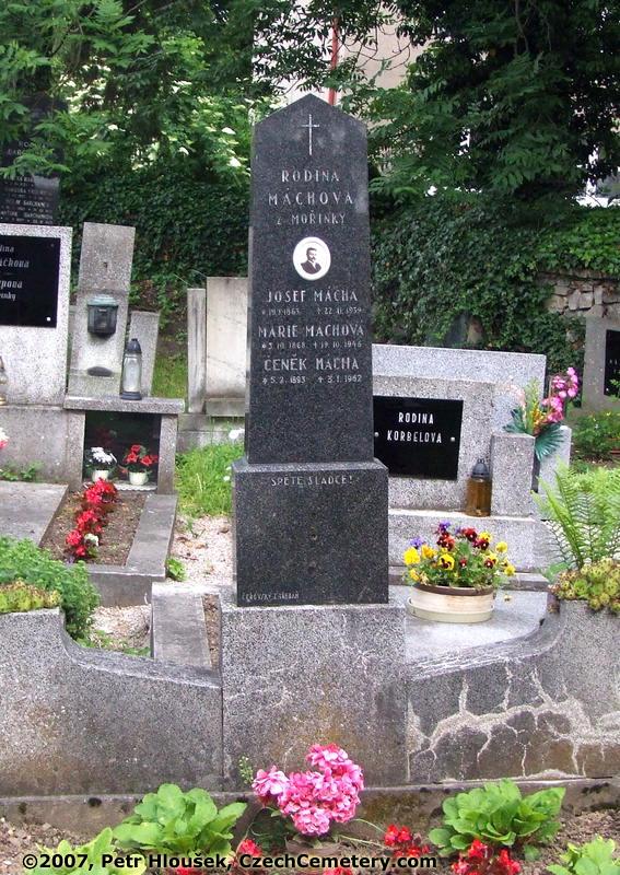 In front: Josef Mácha, *19.1.1863 - †22.11.1939 Marie Máchová, *3.10.1868 - †19.10.1946 Čeněk Mácha, *5.2.1893 - †3.1.1962 | Neighbouring graves: |