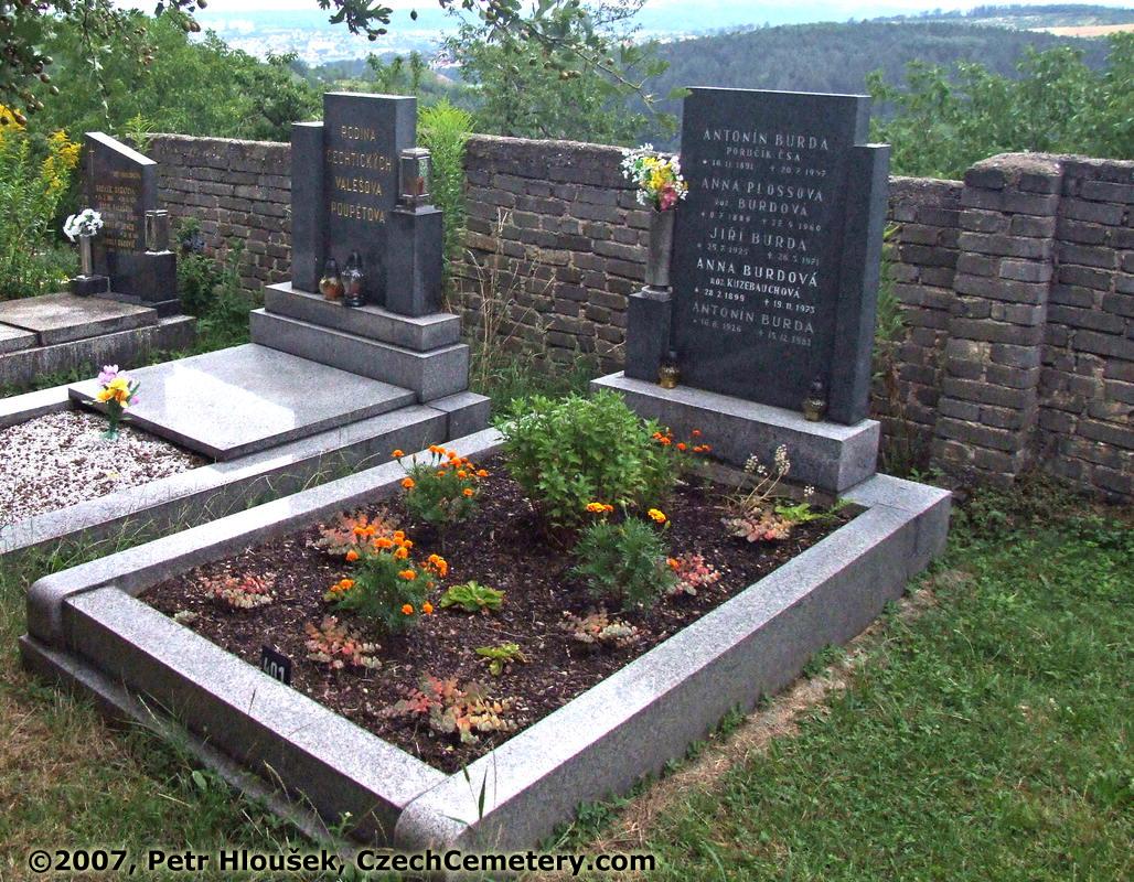 Left: Antonín Burda, poručík Č.S.A., *16.11.1891 - †20.7.1947 Jiří Burda, *25.7.1925 - †26.3.1971 Antonín Burda, *16.8.1926 - †15.12.1982 | Neighbouring graves: Rozálie Zagatová, *24.3.1882 - †28.12.1974 Miroslav Jenco, *7.1.1959 - †20.10.1981 Andrej Borovič, *17.7.1948 - †14.9.2003 |