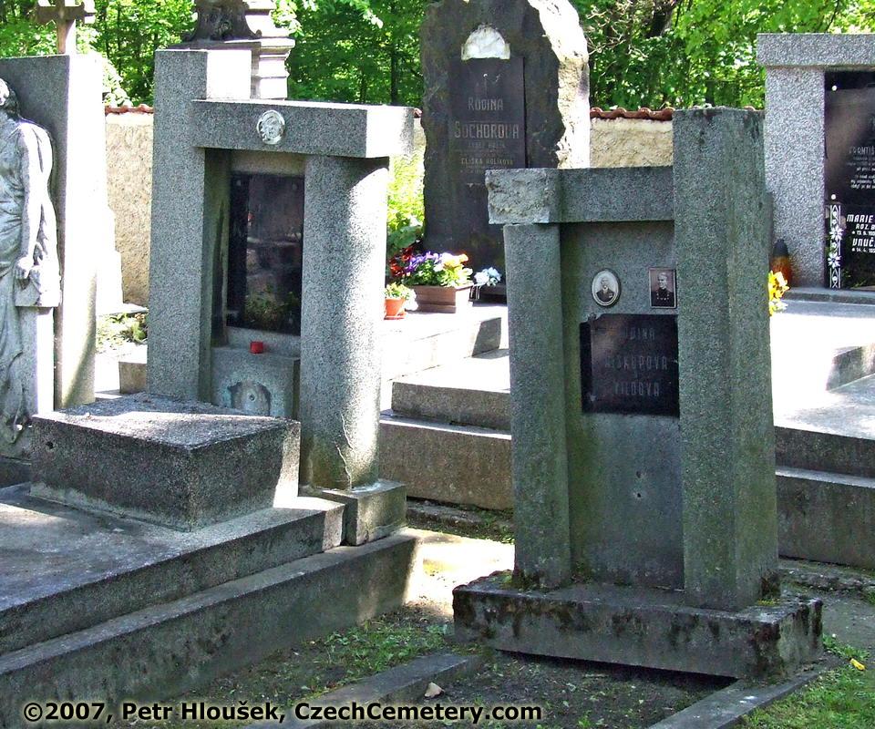 Vlevo: | Vpravo: | Okolní náhrobky: Josef Holík, ruský legionář a vrch. strážm. četnictva, *5.10.1897 - †16.7.1968 Eliška Holíková, industriální učitelka, *21.5.1893 - †16.12.1973 Josef Sochor, *11.11.1868 - †30.8.1918 Josef Holík, *1.8.1924 - †30.1.1989 |