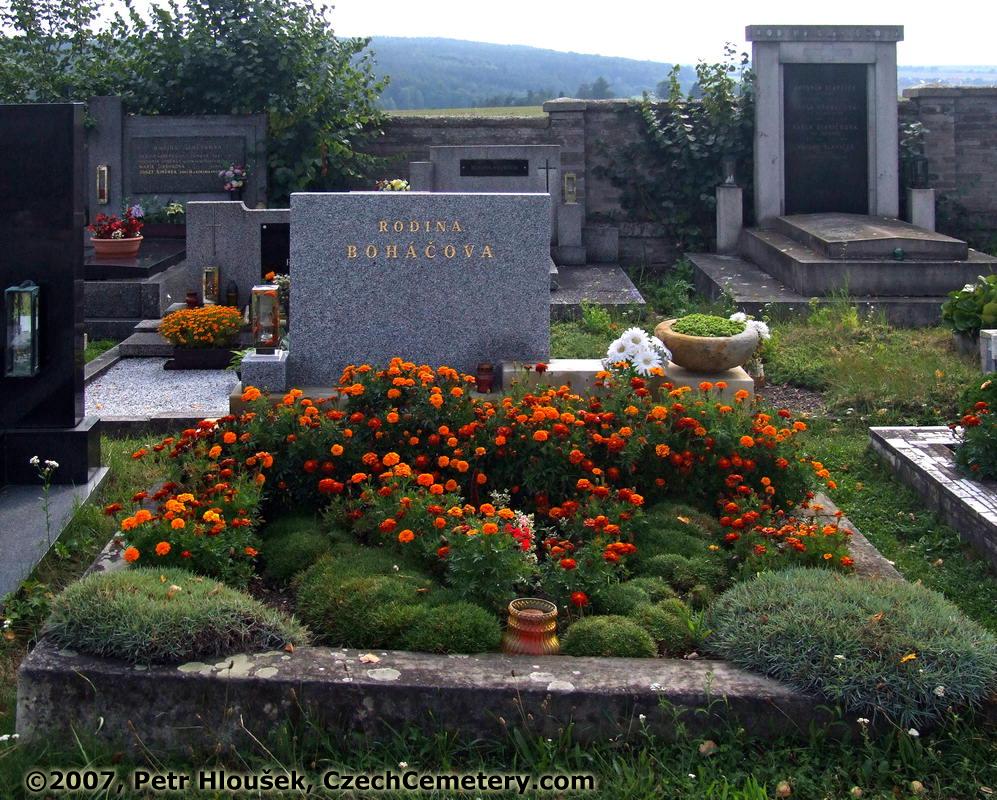Vprostřed: | Okolní náhrobky: Antonín Slavíček, hostinský, *3.3.1856 - †28.10.1934 Václav Slavíček, hostinský, *30.8.1891 - †29.2.1964 Antonín Šimůnek, mistr hrnčířský, *1877 - †1952 Josef Šimůnek, hrnčíř a keramik, *9.11.1908 - †21.12.1989 |